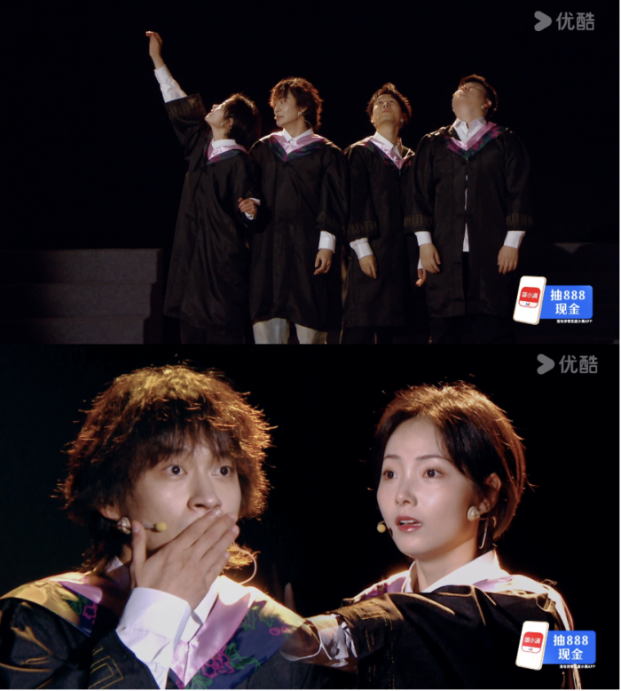 本期节目最后总制作人黄磊让玩家们再次进行选择,有人选择与过去告别,有人依旧坚持初心。在青春的背景下,永远少不了告别的插曲。本期戏剧《就那么告别吧》讲述了相互喜欢的两个人却因为毕业季的来临因为选择不同而分道扬镳的故事。或许经历过毕业的我们知道来自青春的意难平永远说不完,但希望各位即将毕业的学生们可以少留遗憾带着青春的无畏,走进社会越飞越高。