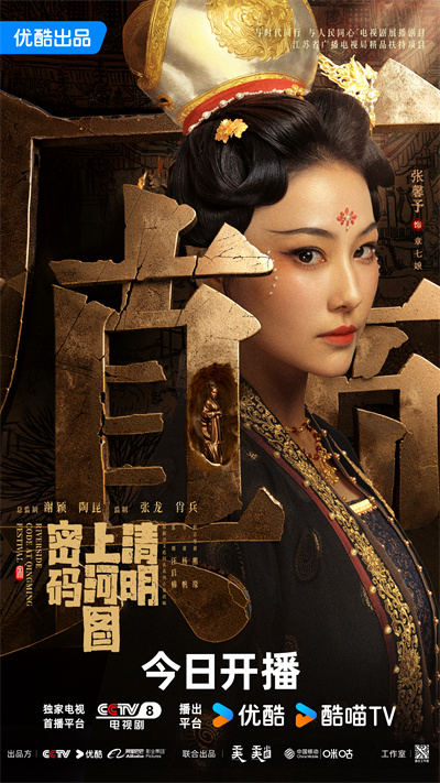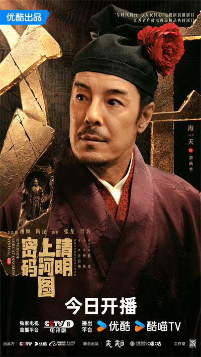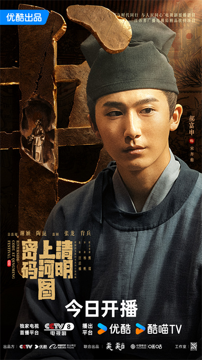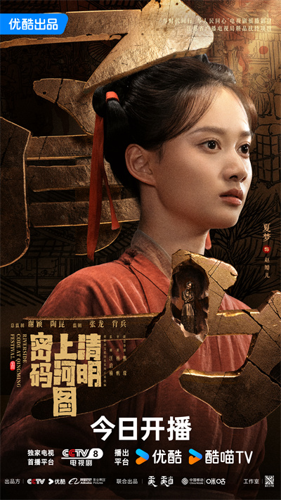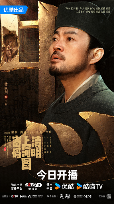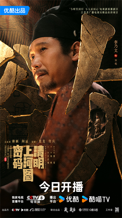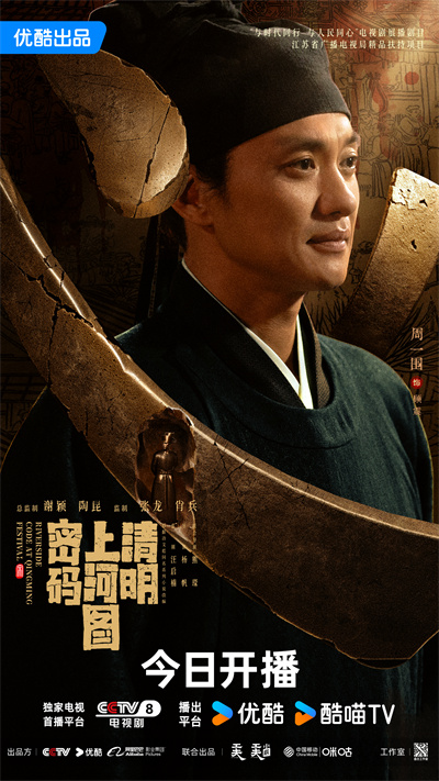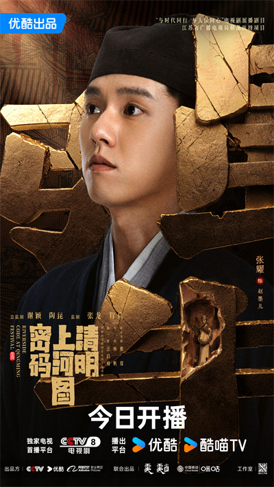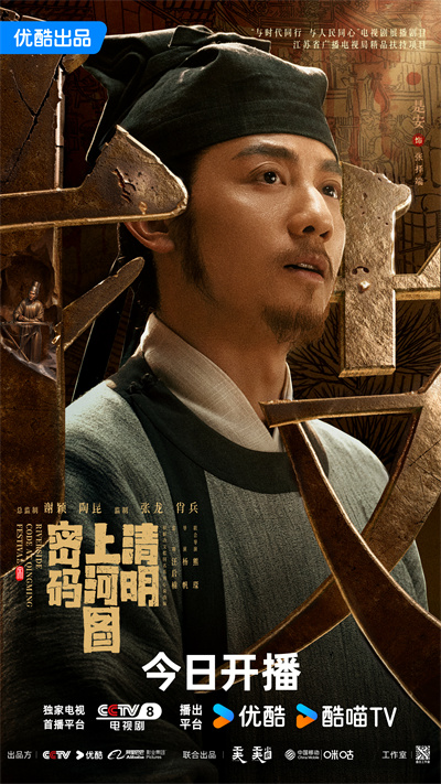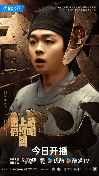 今日,由中央电视台、优酷、苏州剧有想法出品,工夫影业、工夫小戏影业、咪咕联合出品,工夫影业、工夫小戏影业制作,汪启楠监制,杨帆导演、熊琛联合导演,张颂文、白百何领衔主演,周一围、侯岩松特别主演,张耀、夏梦、林家川、是安、郝富申、郝汉联袂主演,李乃文、海一天、张馨予特邀主演的名画探案悬疑剧《清明上河图密码》正式开播。将于19:30上线,央视电视剧频道进行电视首播,首播1集。优酷、咪咕视频全网首播,会员首更3集。伴随开播,官方同步释出开播预告、戏台群像海报以及角色拆字海报等物料,以奇绝视效揭开繁华东京城背后的波谲云诡,瞬间引发网友关注与热议。