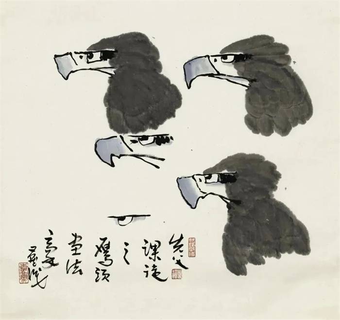 在参观展厅的过程中,中央美术学院人文学院博士生贾浅烦作为导览,他以谢赫"六法论"中"传移模写"的千年智慧为引,揭开展览四重维度的深意:"典范"单元中,宋徽宗《御鹰图》摹本与齐白石临朱耷《瓶花》并置,印证从帝王到巨匠皆需"师古人"的东方艺术法则;"遗产"板块里,叶浅予《临敦煌石窟壁画珍禽瑞兽》与宗其香的水墨版画临摹,诉说着中西艺术碰撞的火花;