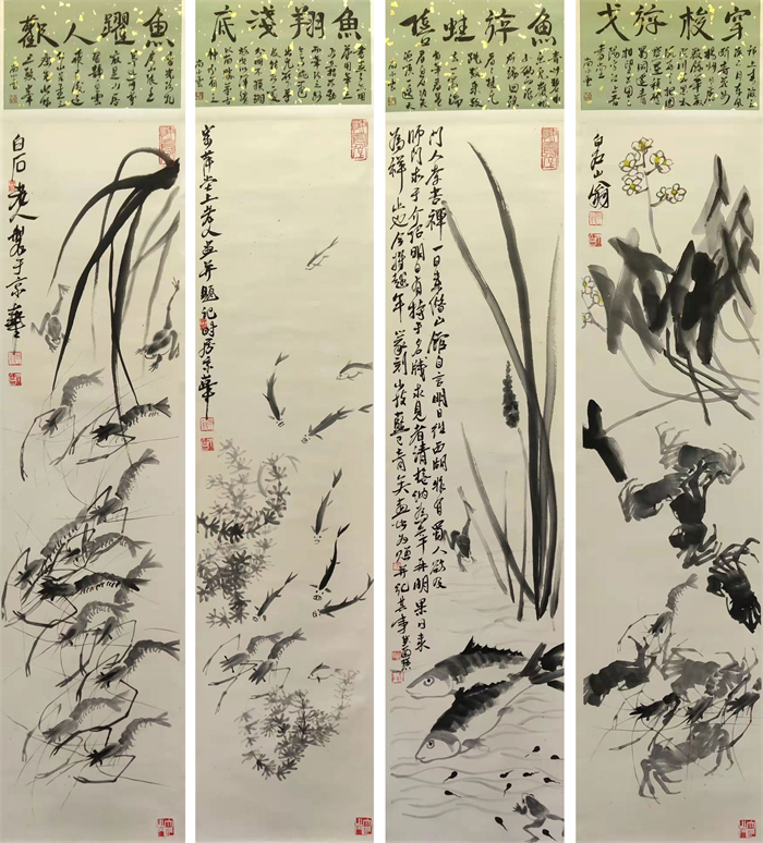 齐白石 《水族四条屏》