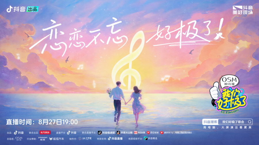 七夕夜,爱意与歌声撞了个满怀!8月27日,由东方娱乐与抖音联合出品,欧诗漫总冠名、极萌美容仪与极狐汽车行业赞助的《我们好极了歌会》第三期在海宁盐官热力开演。本期“恋恋不忘好极了”专场,大张伟、黄子弘凡再度化身“快乐召集人”,携手程响、陈艺鹏、房东的猫、峰峰疯了、龚明威、韩雨彤、李柄熹、容祖儿、曾辉、张韶涵、张远、赵泳鑫等嘉宾,为观众打造了一场浸润爱意、嗨翻全网的浪漫盛宴。